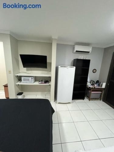 Studio Pet Friendly 02 se nachází v destinaci Matinhos a poskytuje ubytování s možností vlastního stravování, s balkonem a bezplatným Wi-Fi. Tento apartmán má 1 ložnici, kuchyň s kompletním vybavením a 1 koupelnu.