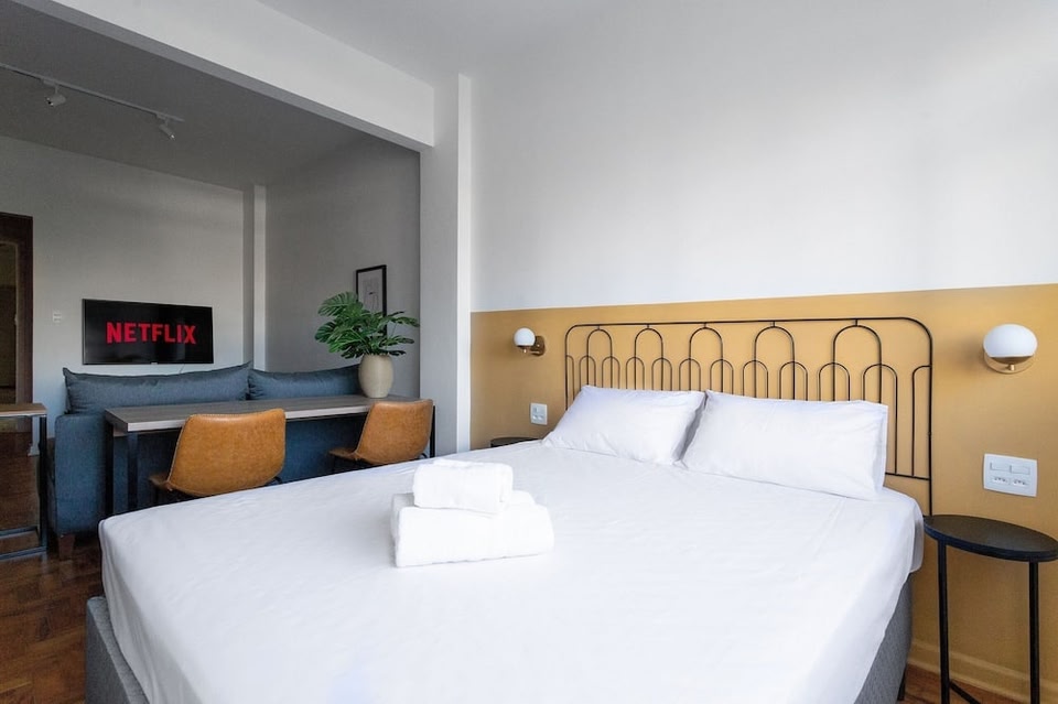 Located in São Paulo, this apartment is in the city center. Paulista Avenue and Rua Augusta are worth checking out if shopping is on the agenda, while those wishing to experience the area's natural beauty can explore Ibirapuera Park. Looking to enjoy an event or a game? See what's going on at Allianz Parque or Anhembi Convention Center. Located in the city center, this welcoming apartment lets you experience it all in São Paulo. Paulista Avenue is an easy 15-minute walk away and Rua Augusta is also a quick 6-minute walk away. Check out other neighborhoods and see more of São Paulo by hopping on a metro at either Higienópolis-Mackenzie Station, a short 4-minute walk away, or Paulista Station, 11 minutes away. This vacation rental features hypo-allergenic bedding and concierge services. Enjoy the free WiFi and TV. Bathroom amenities include a hair dryer, towels, and toilet paper. The kitchen is equipped with a refrigerator, as well as a coffee maker, a microwave, and cookware. And you won't have to pack extra clothes, because you'll also have a dryer. Other amenities include bed sheets, wardrobe or closet, and a dining table.
