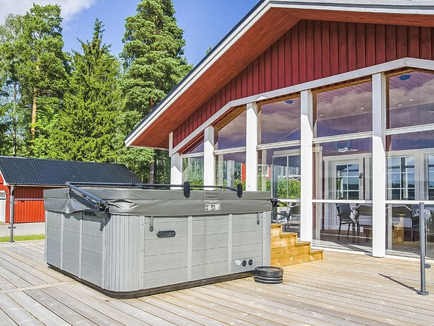 15 km south of Porvoo, Gulf of Finland 30 m, quite shallow sanded clay bottom, but from the end of the jetty the water is already deep. Rowing boat in shared use with another cottage. Wooden villa 2000, living room-kitchen (2 sofa beds, spread out 160 cm wide), bedroom with double bed, shower room / WC, sauna (electric stove), hall, glazed terrace (the glass wall facing sea can be completely opened). There is a fireplace on the terrace. Washer in the bedroom behind a curtain. Under floor heating in the bedroom and shower room / toilet. Air source heat pump. Solar energy is also used to heat the villa. Cot (baby's travel bed) and high chair available only by pre-booking. Barbecue hut where gas grill and wood heated grill. The reservation includes 3 wooden baskets of firewood. There is a hydro massage bath outdoors for rent at the price of 300 euros for the weekend, 450 euros for the whole week inc. towels. Note! Water will not be changed during the stay. SUP board available for rent from the owner for 150 euros. Bookings include final cleaning and bed linen according to the number of persons indicated (in new bookings made after 13.9.24).