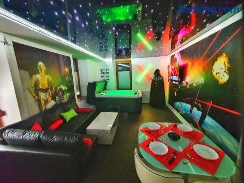 Galaxy spa-4 Pers-Jacuzzi-Insolite-Parking-Jardin-Clim-Colmar se nachází v destinaci Holtzwihr a poskytuje terasu, wellness centrum a ubytování s bezplatným Wi-Fi a výhledem do zahrady. Ubytování nabízí zahradu a neplacené soukromé parkoviště.