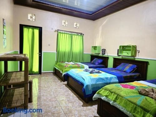 Experience an abundance of unparalleled facilities and features at Green View Ubud Hostel Bali. Maintain seamless communication using the complimentary Wi-Fi at hotel.Effortlessly arrange transportation to and from the airport using the hotel's airport transfer services. For visitors traveling by automobile, complimentary parking is available. During leisurely days and evenings, on-site amenities such as daily housekeeping enable you to fully enjoy your accommodation.For all your minor, last-minute requirements, the convenience stores can promptly cater to them, eliminating the need to venture out.Kindly note that smoking is prohibited in the hotel to ensure fresher air for all visitors. At Green View Ubud Hostel Bali, every guestroom is provided with convenient amenities and fittings to ensure a comfortable stay.Enhance your experience at hotel with the knowledge that certain rooms are equipped with linen service and air conditioning for your convenience. Certain rooms boast in-room amusement features such as television and cable TV, offering guests an enjoyable stay.Essential restroom facilities are equally significant, and at the hotel, some visitor bathrooms offer toiletries to enhance your experience. At the hotel, an assortment of easily accessible and delicious meal choices are available to satisfy your appetite whenever it strikes.