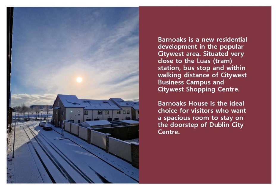 Private Room Ensuite Bathroom HomeStay at Barnoaks House se může pochlubit výhledem do zahrady a poskytuje ubytování s zahradou a patiem. The Square Tallaght se nachází přibližně 4,8 km odtud.