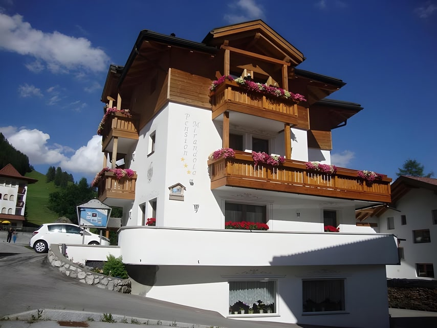 Pension Mirandola se nachází pouhých 150 metrů od sjezdovek Colfosco a nabízí pokoje v alpském stylu s balkonem s výhledem na Dolomity. Tento rodinný hotel má wellness centrum, tradiční restauraci a bezplatné Wi-Fi v celé budově.
