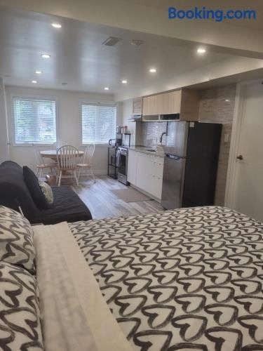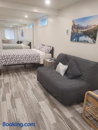Modern studio with kitchenette and bath se nachází v destinaci Guelph a poskytuje bezplatné Wi-Fi, neplacené soukromé parkoviště a ubytování s výhledem do zahrady. Glenhyrst Art Gallery of Brant se nachází jen 45 km odtud.