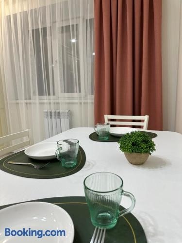Comfortable like home se nachází v destinaci Aktobe. Toto ubytování nabízí balkon, neplacené soukromé parkoviště a bezplatné Wi-Fi. Tento apartmán s klimatizací má 1 ložnici, TV s plochou obrazovkou, jídelní část, kuchyň s lednicí a obývací prostor.