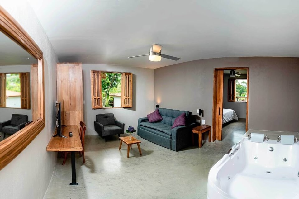 Located in Santa Rosa de Cabal, Hotel La Finca del Café is in a rural area and near a boardwalk/promenade. Plaza de Mercado los Fundadores and Victoria Shopping Mall are worth checking out if shopping is on the agenda, while those wishing to experience the area's natural beauty can explore Cascada El Tigre and Las Araucarias Park. Mariposario Bonita Farm and Boliz are also worth visiting. Take an opportunity to explore the area for outdoor excitement like hiking/biking trails. Adults-only hotel with free breakfast and an outdoor poolThis hotel features an outdoor pool, a restaurant, and a snack bar/deli. Free full breakfast, free WiFi in public areas, and free self parking are also provided. Other amenities include a hot tub, laundry facilities, and an arcade/game room. Hotel La Finca del Café offers 8 accommodations, which are accessible via exterior corridors and feature blackout drapes/curtains. These individually decorated and furnished accommodations include desks. Beds feature down comforters. Flat-screen televisions come with cable channels. Bathrooms include showers with rainfall showerheads. Guests can surf the web using the complimentary wireless Internet access. Housekeeping is provided daily. An outdoor pool and a hot tub are on site. The recreational activities listed below are available either on site or nearby; fees may apply. The following facilities are closed on Wednesday, Thursday, Friday, and Saturday: Full-service spa