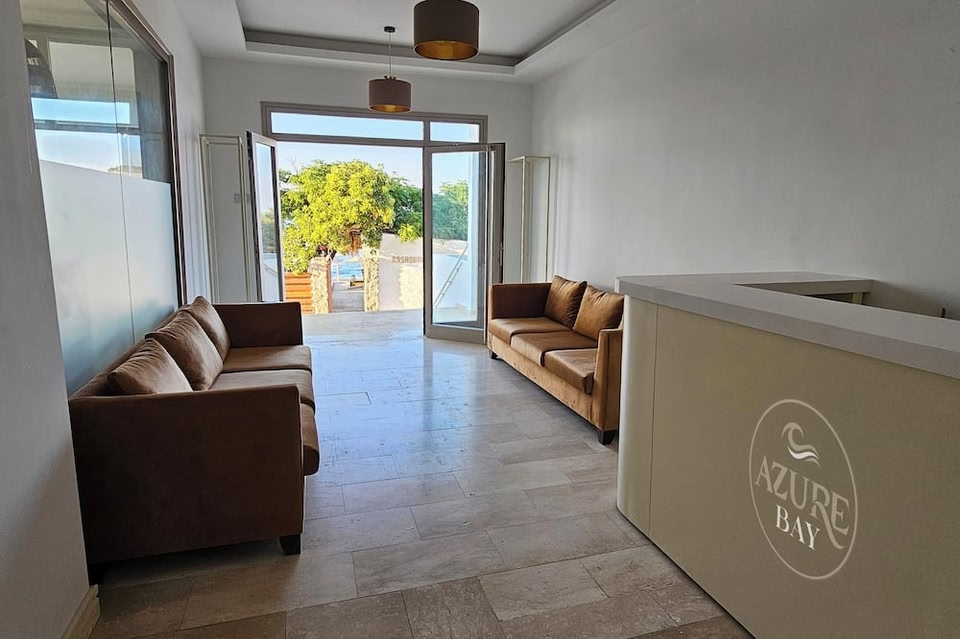 Azure Bay se nachází v destinaci Karaoğlanoğlu a poskytuje ubytování s venkovním bazénem, neplaceným soukromým parkovištěm, zahradou a terasou. Pláž Karaoğlanoğlu je 1,1 km daleko. Ubytování nabízí bar. Benátský sloup se nachází asi 29 km daleko.