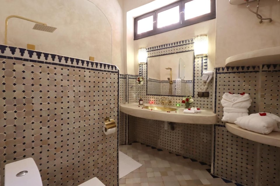 Located just a 12-minute walk from Jemaa el-Fna Square, Riad Atlas Mejbar - Adults Only features traditional Moroccan furniture and terrace with a fountain. Gueliz is a 10-minute drive away.