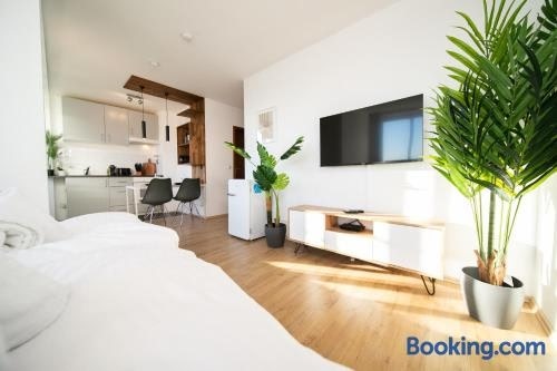 Studio WHITE - Central - Balcony - Fair - Kitchen se nachází v destinaci Neuss. Rheinuferpromenade se nachází 10 km daleko, Burgplatz 11 km a Kunsthalle Düsseldorf 11 km. Rheinturm / Televizní věž se nachází 8,9 km od tohoto ubytování.