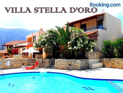 Villa Stella D'oro se nachází v destinaci Georgioupolis a poskytuje venkovní bazén, zahradu, bar a ubytování s bezplatným Wi-Fi a výhledem na hory. Toto ubytování nabízí balkon a neplacené soukromé parkoviště.