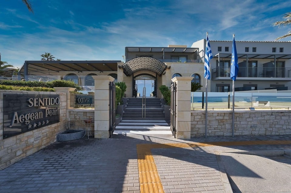 Right on the Blue Flag beach at the end of the Rethymno promenade overlooking the Cretan Sea, 5-star Aegean Pearl provides stylish rooms and a Greek breakfast. The hotel features 3 pools and 1 main restaurant.