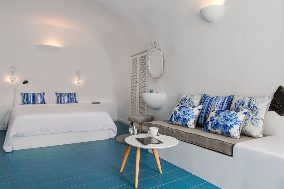 Perched on Caldera cliffs, the Cycladic-style Villa Irini features an outdoor pool and a furnished sun terrace overlooking the Aegean Sea and the Volcano. It offers elegantly decorated units with terrace and provides free WiFi in public areas. License number: 1182834