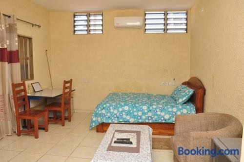 This property offers access to a balcony, free private parking, and free Wifi. The apartment is composed of 1 bedroom, a fully equipped kitchen, and 1 bathroom. A flat-screen TV is provided. Lomé-Tokoin Airport is 1.9 miles away.