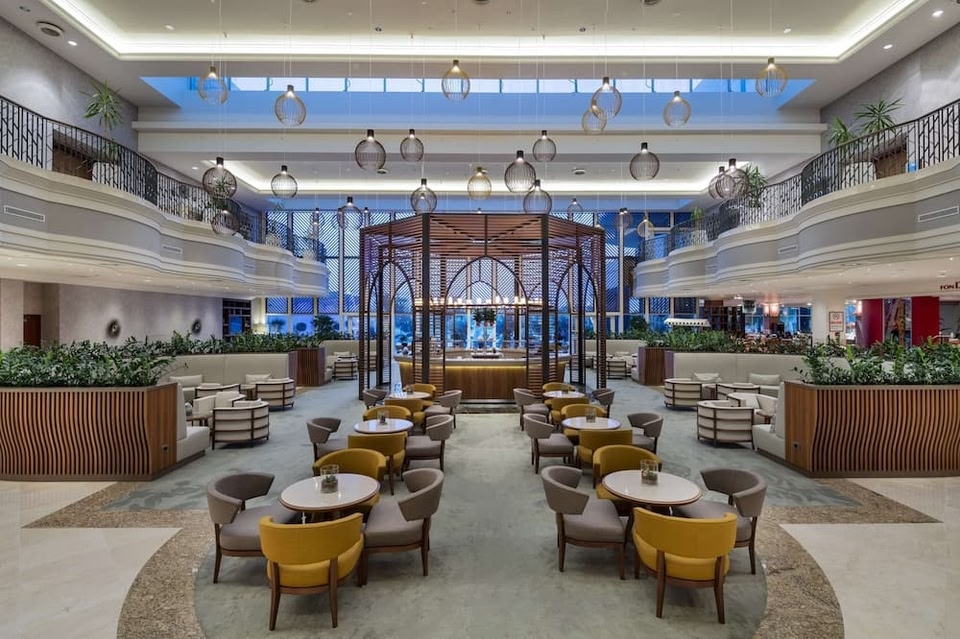 Adana HiltonSA se nachází na břehu řeky Seyhan a nabízí svěží zahradu, terasu, krytý bazén a venkovní bazén. Ve společných prostorách a ve všech pokojích je zdarma dostupné standardní Wi-Fi. Hosté mají volný vstup do wellness centra.